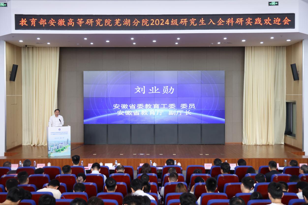 安徽省委教育工委委员、省教育厅副厅长刘业勋,芜湖市人民政府副市长朱子,校党委书记卢平,校党委常委、副校长凤权出席会议。在芜高校负责人,省外合作高校负责人及导师代表,部分企业导师代表,部分市直单位负责人,校办、卓越工程师学院(奇瑞学院)负责人,安徽高等研究院芜湖分院2024级入企研究生参加了本次欢迎会。